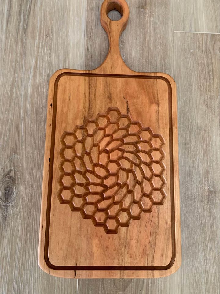 This handmade carved cherry charcuterie/cutting board is a perfect conversation starter for any kitchen.